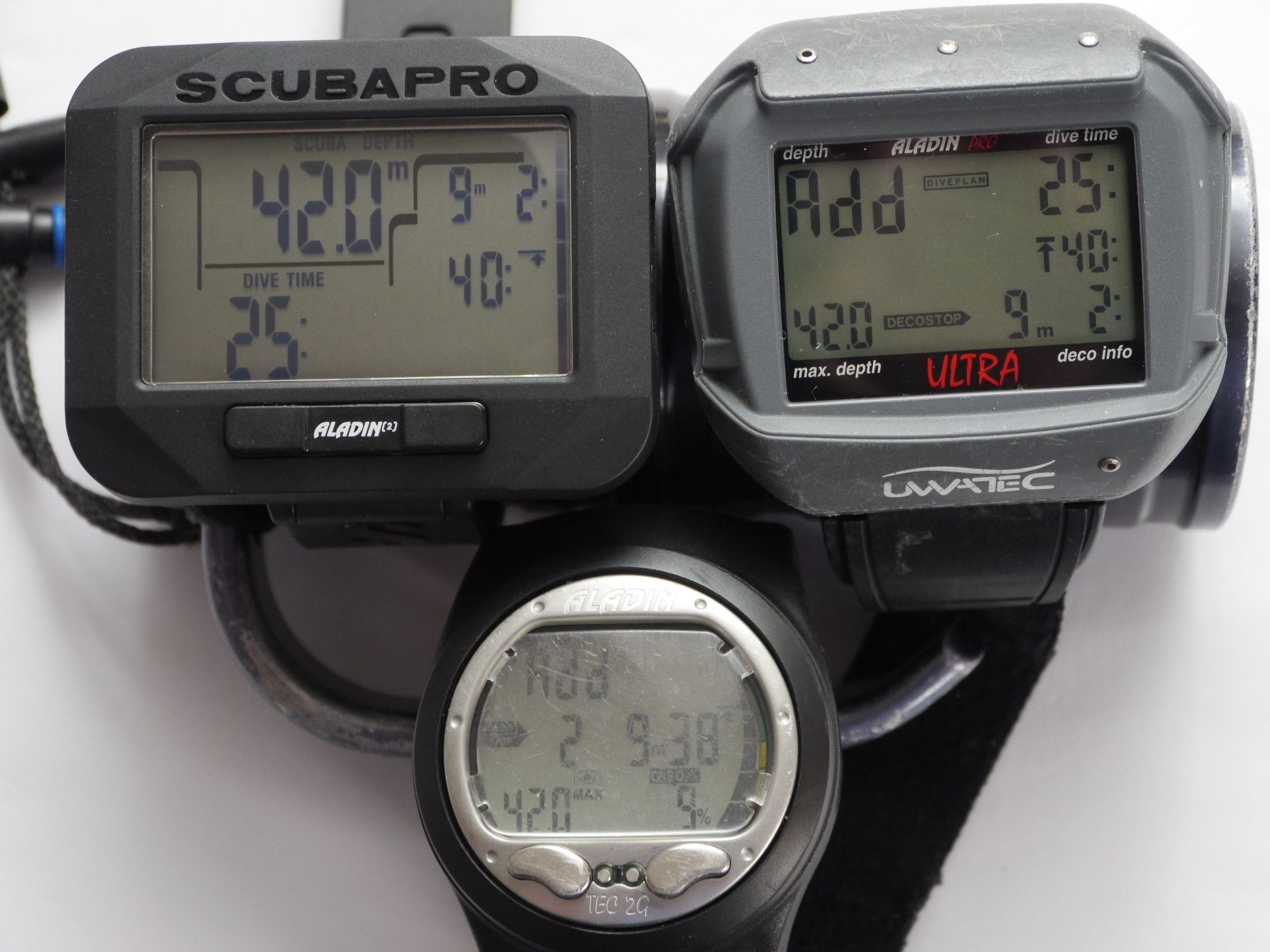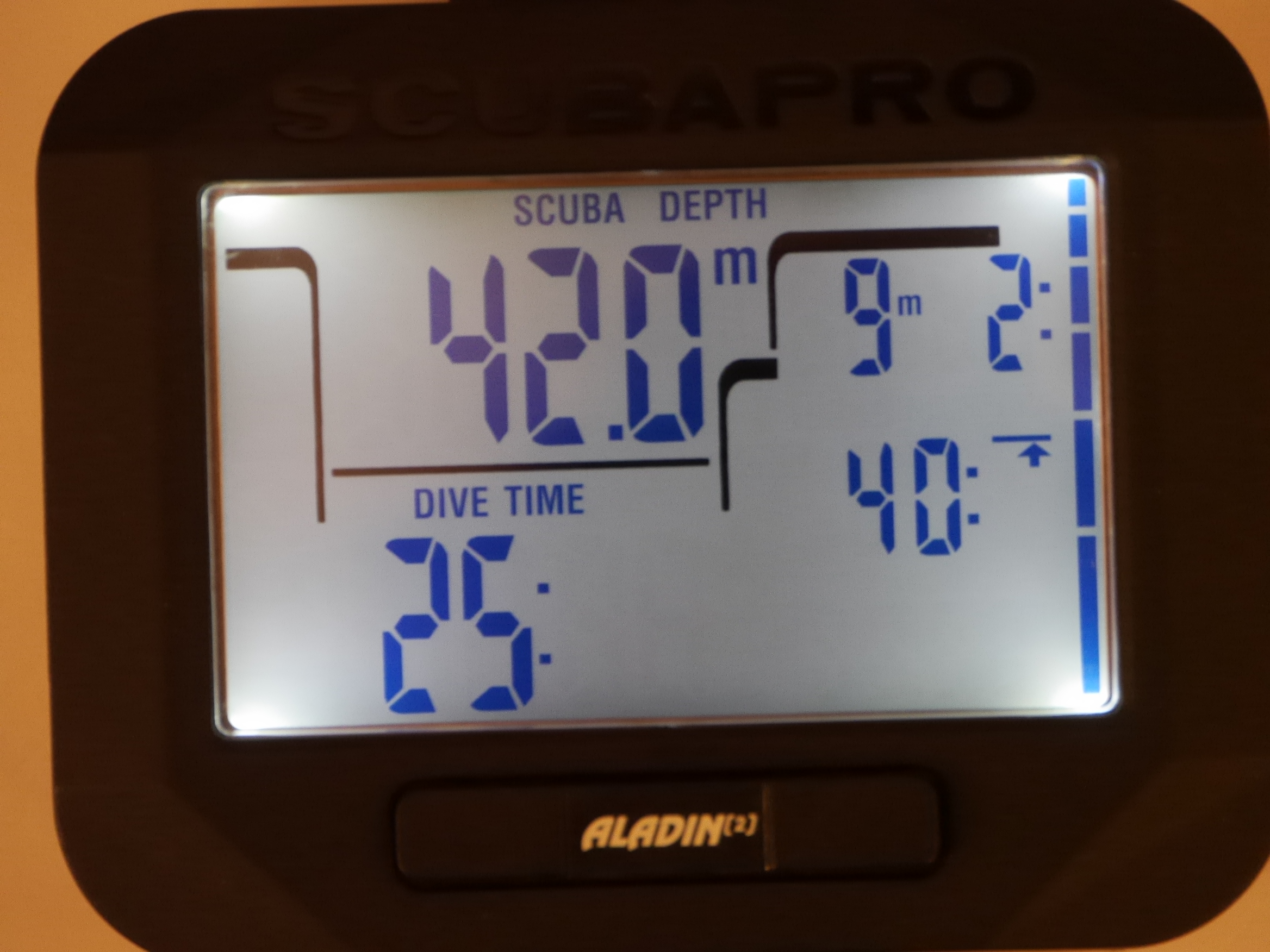 - unser notorischer TEST Tauchgang (Tiefe 42 m, 25 min Grundzeit), mit: