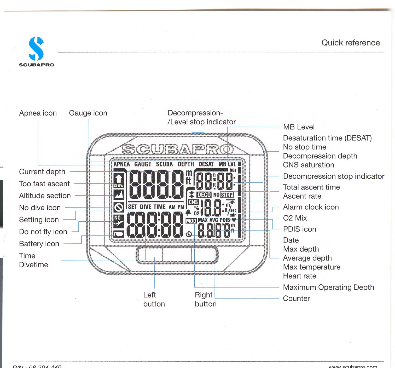 - Quelle: Vorder - & Rückseite der Quick Reference Card UWATEC / Scubapro