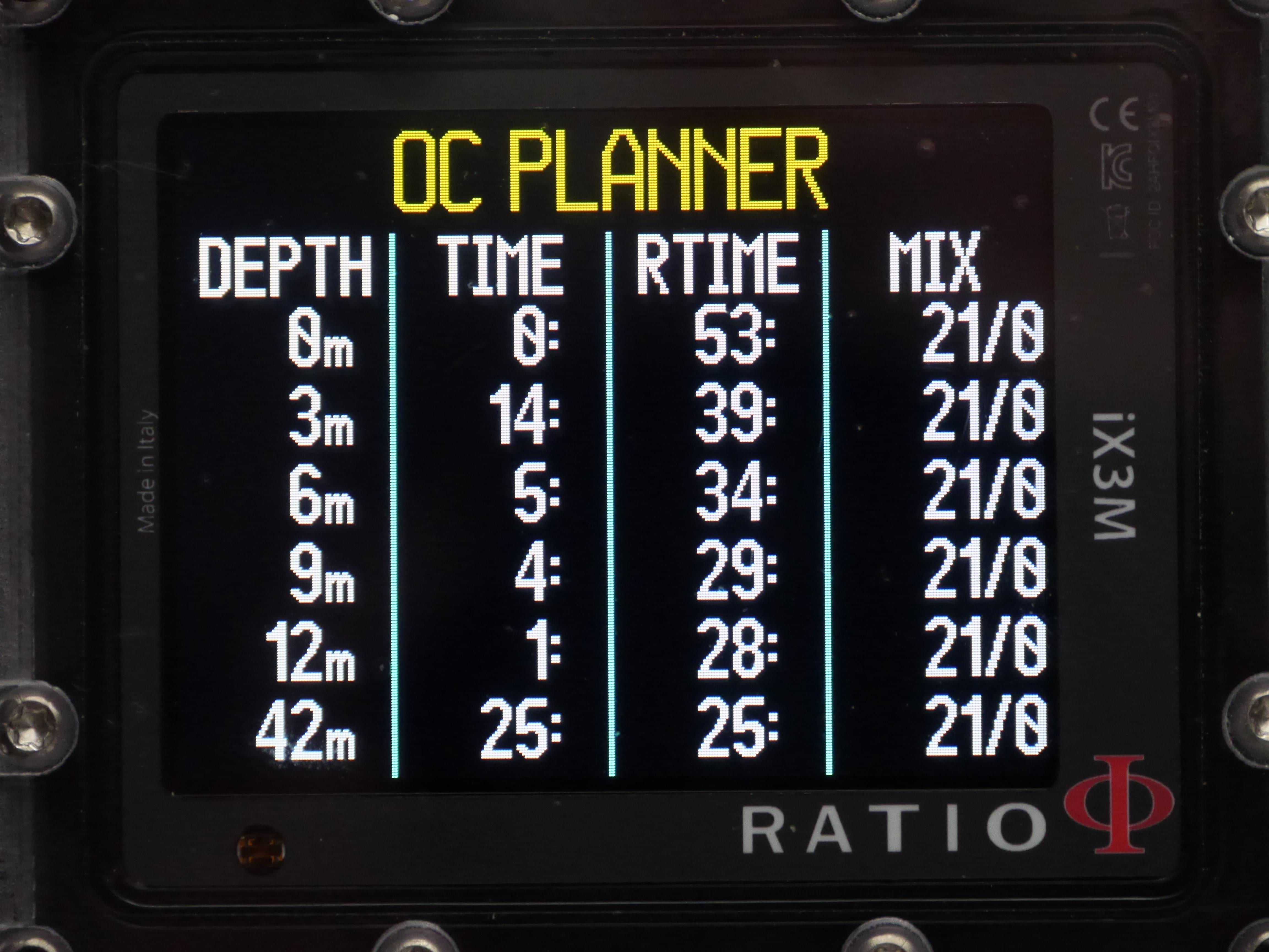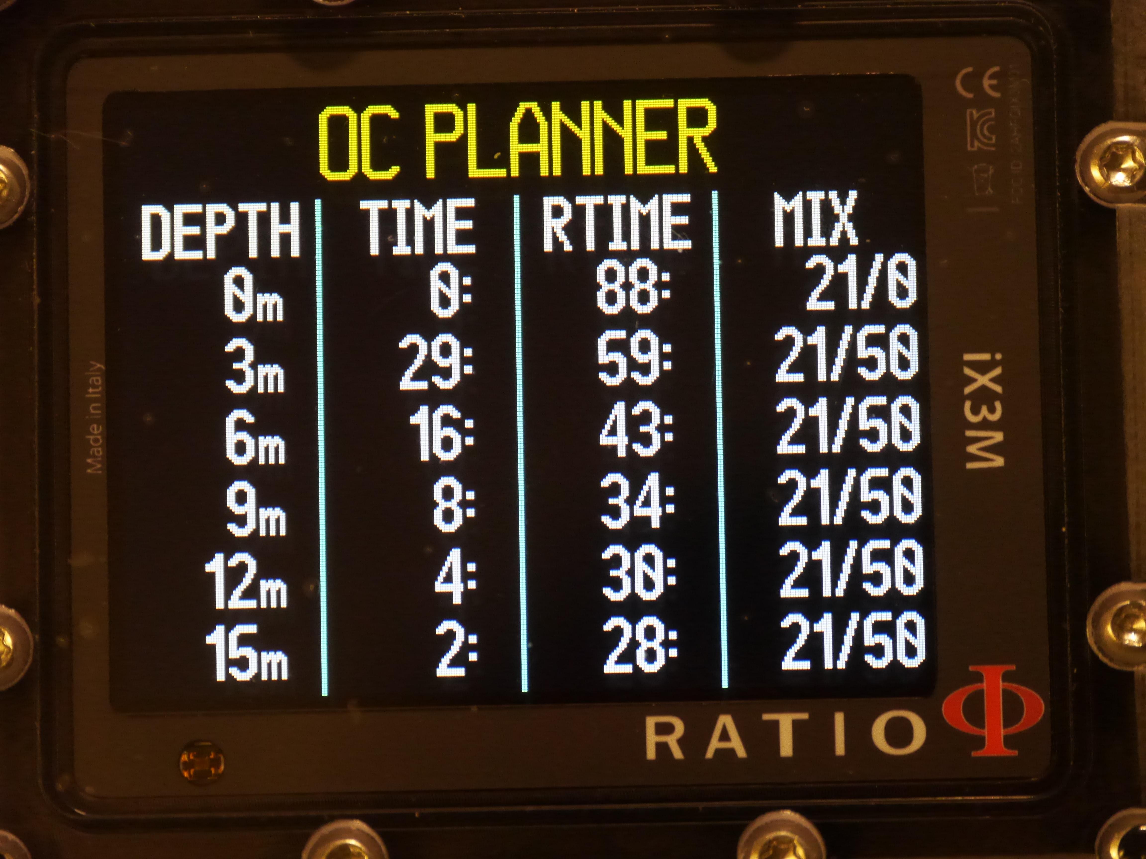 - but the OC Planner stops at 60 min.! (min. depth = 18 m)
